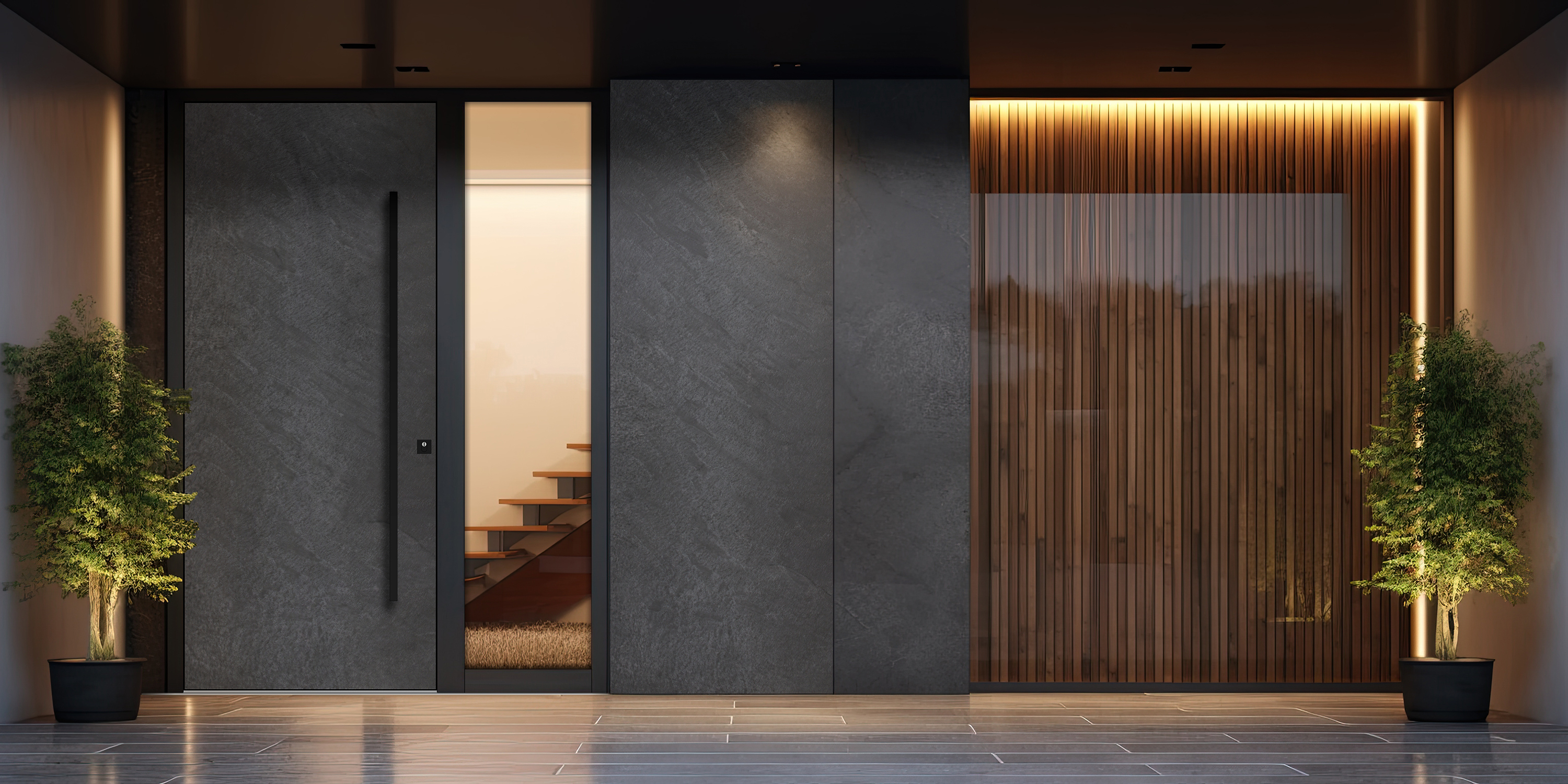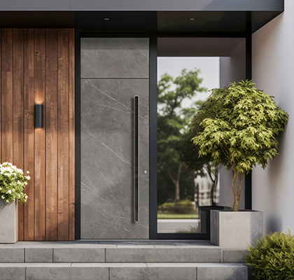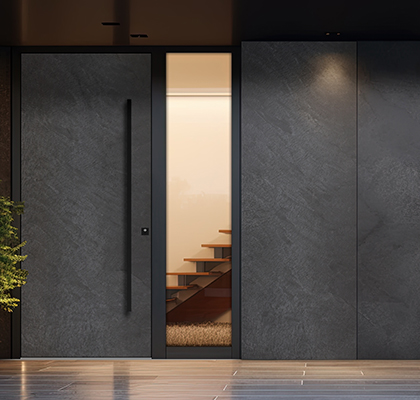 We value the work of human hands, derived from passion and the tradition of several generations. Our latest wood/stone collection offers a unique combination of high-quality materials such as wood, reclaimed wood, ceramic, stone, laminate and black enameled glass that will transform your entrance doors into elegant works of art.