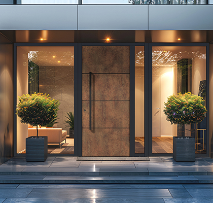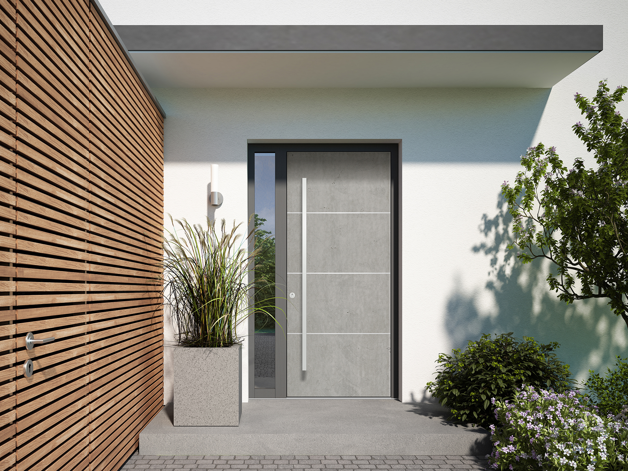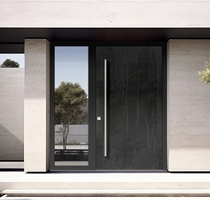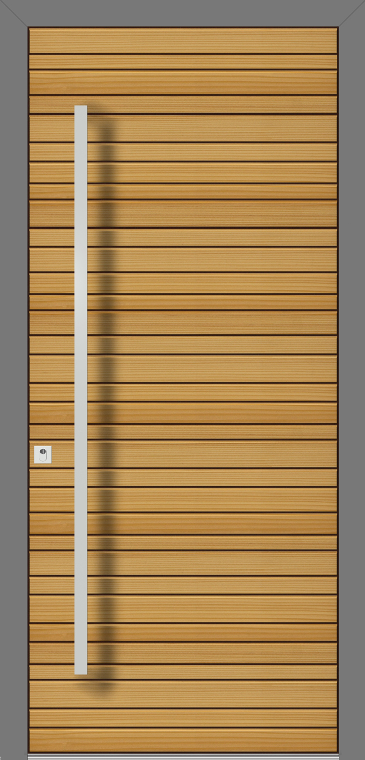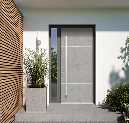 A high-quality selection of additional equipment allows you to have your own unique front door made to measure using various material combinations. Discover the variety of our new collection and give your door a new, impressive look.